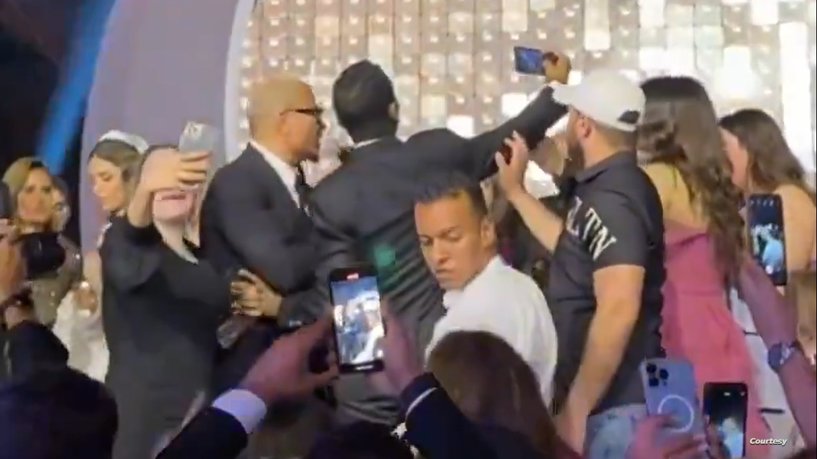 وظهر عمرو دياب في مزاج حاد في الفيديو المتداول، بينما كان يصر أحد المعجبين على التقاط “سيلفي” مع “الهضبة”، خلال أدائه إحدى أغانيه في حفل الزفاف، الأمر الذي انتهى بقيامه بتوجيه “صفعة” للمعجب على وجهه، قبل أن يتدخل الأمن ويقوم بإبعاد الأخير، من بين الحشد الذي كان يحيط بالعروسين..